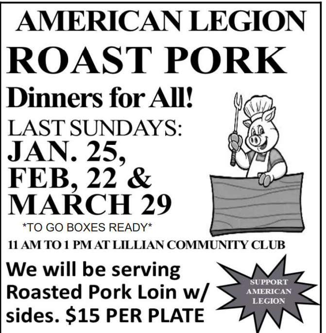 Dixie has a Chicken Dinner on Sunday January 11, February 8,